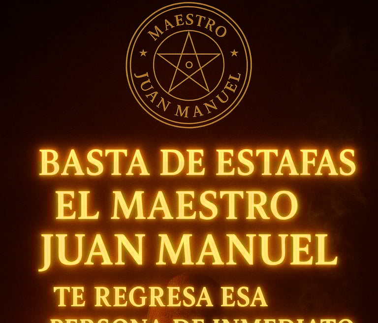 El Maestro Juan Manuel es un reconocido guía espiritual con amplia experiencia en rituales de unión y limpieza energética. A través de su don natural y conocimientos ancestrales, ha ayudado a cientos de personas a recuperar a su pareja, sanar vínculos rotos y atraer el amor verdadero.